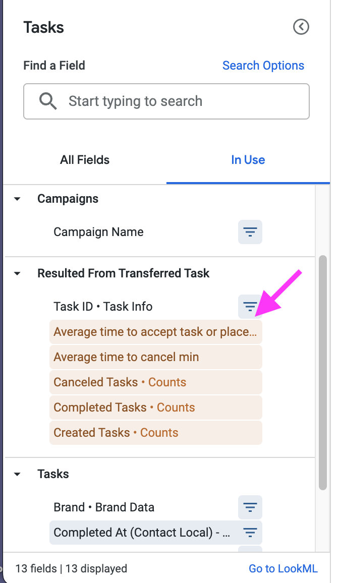- Use the "Resulted from Transferred Task" field to get created transfers, cancelled transfers, etc.